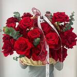 Эвкалипт - 1 дана Себет өрілген - 1 дана раушан - 25 дана
