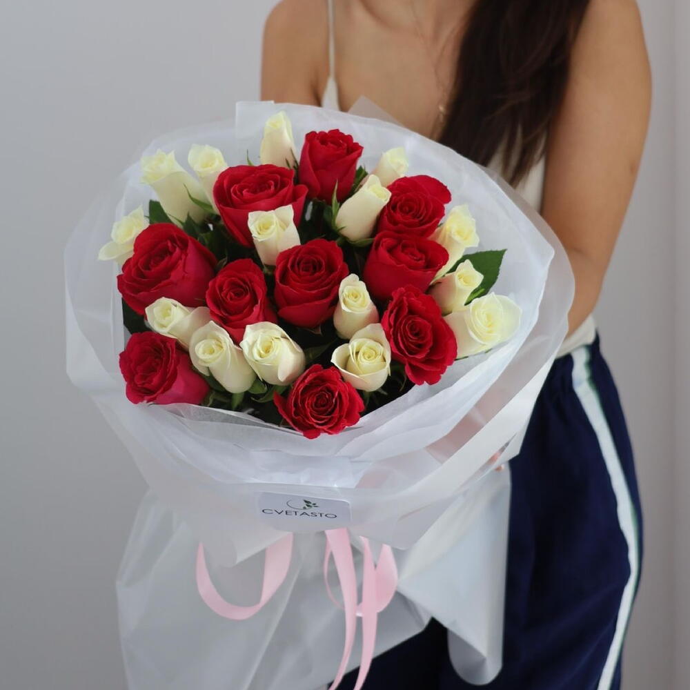 Қызыл-ақ аралас 25 раушан