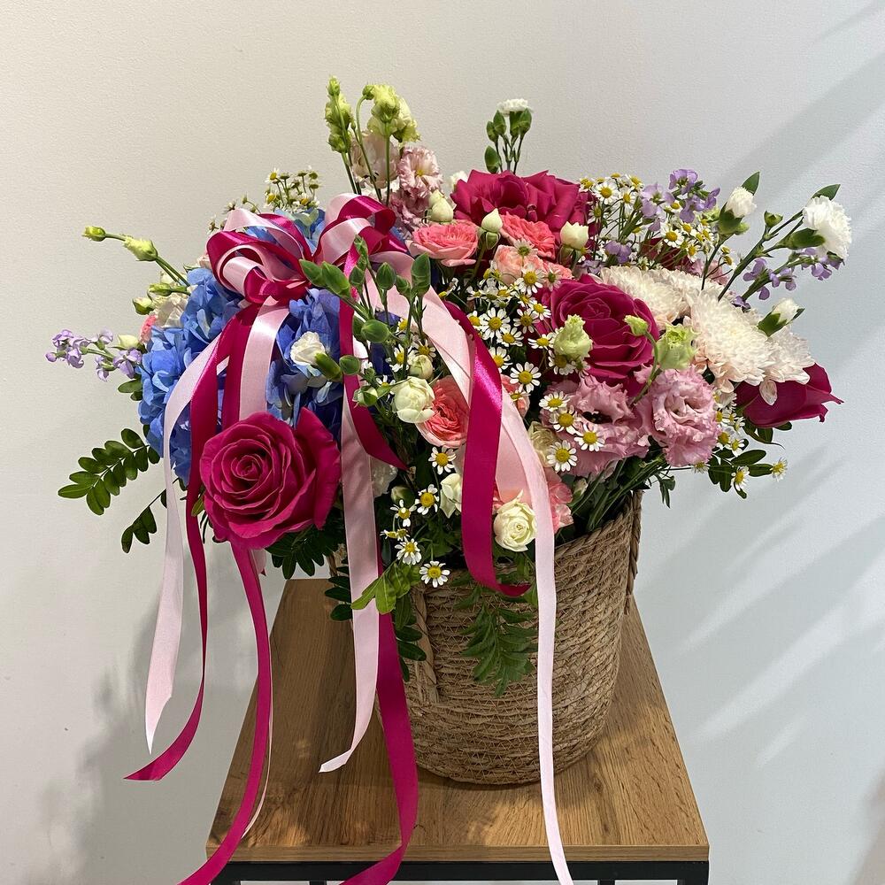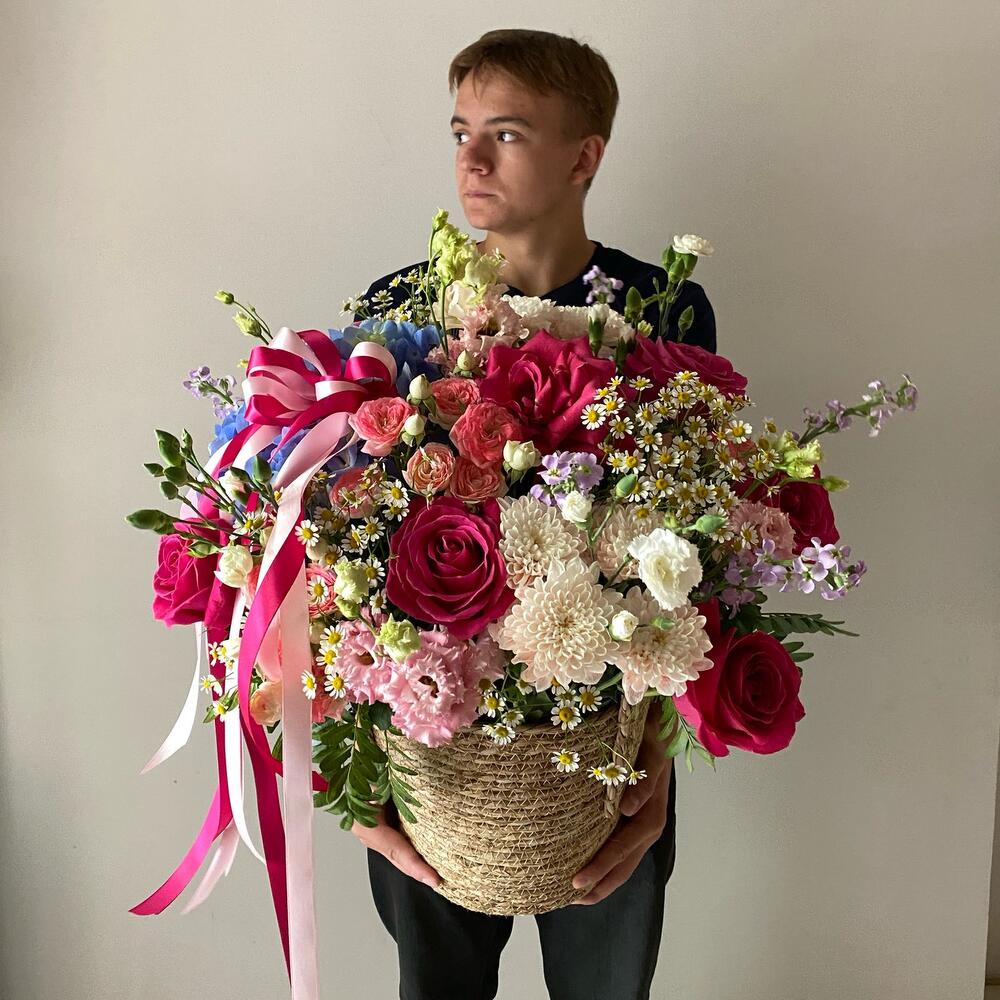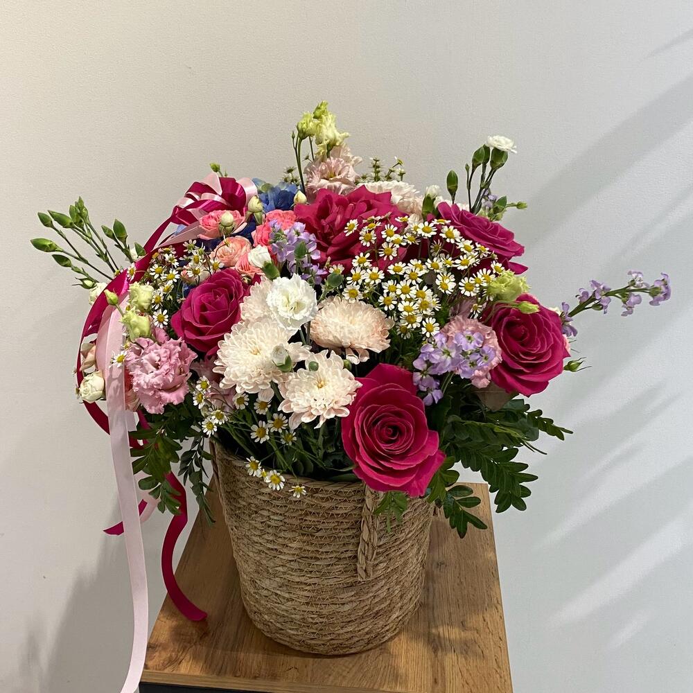 Потрясающая корзина с ароматными цветами, прекрасным составом изумительно украсит самый прекрасный день. Создай нежность и любовь