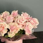 11 «Қызғылт Мондиал» раушан гүлінен жасалған композиция – жай ғана нәзіктіктен артық. Ашық қызғылт реңк, жұмсақ және әуе, нәзік жанасу сияқты. Бұл гүл шоғы таңдануды, сонымен қатар табандылықты білдіреді. Композиция ұқыпты және үйлесімді көрінеді – нәзік палитра, жапырақшалардағы ашық қызғылт қызғылт реңк және таза эстетика. Көлеңкесі: жұмсақ ұнтақ қызғылт Көңіл-күй: шынайылық, жақындық, сезімге деген сенімділік Беріктігі: 7–10 күнге дейін «Маған ұнайды» дегеннен сәл артық айтқыңыз келгенде.