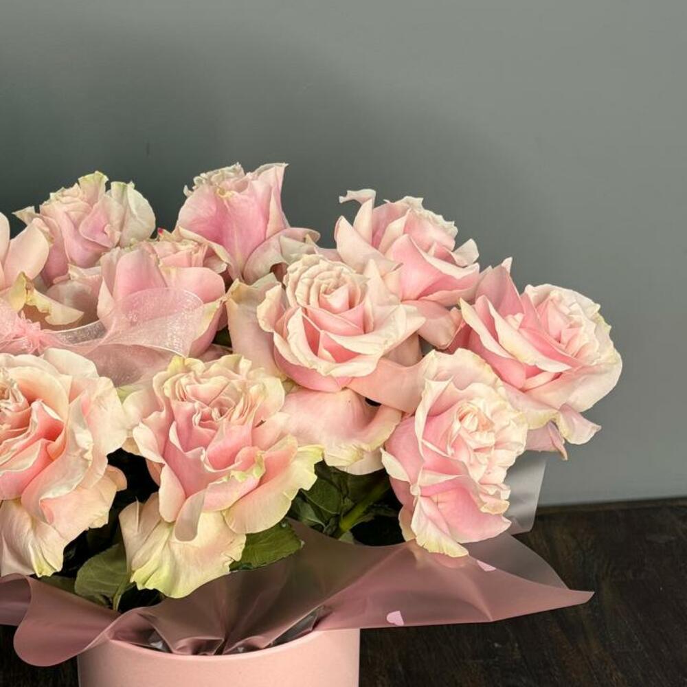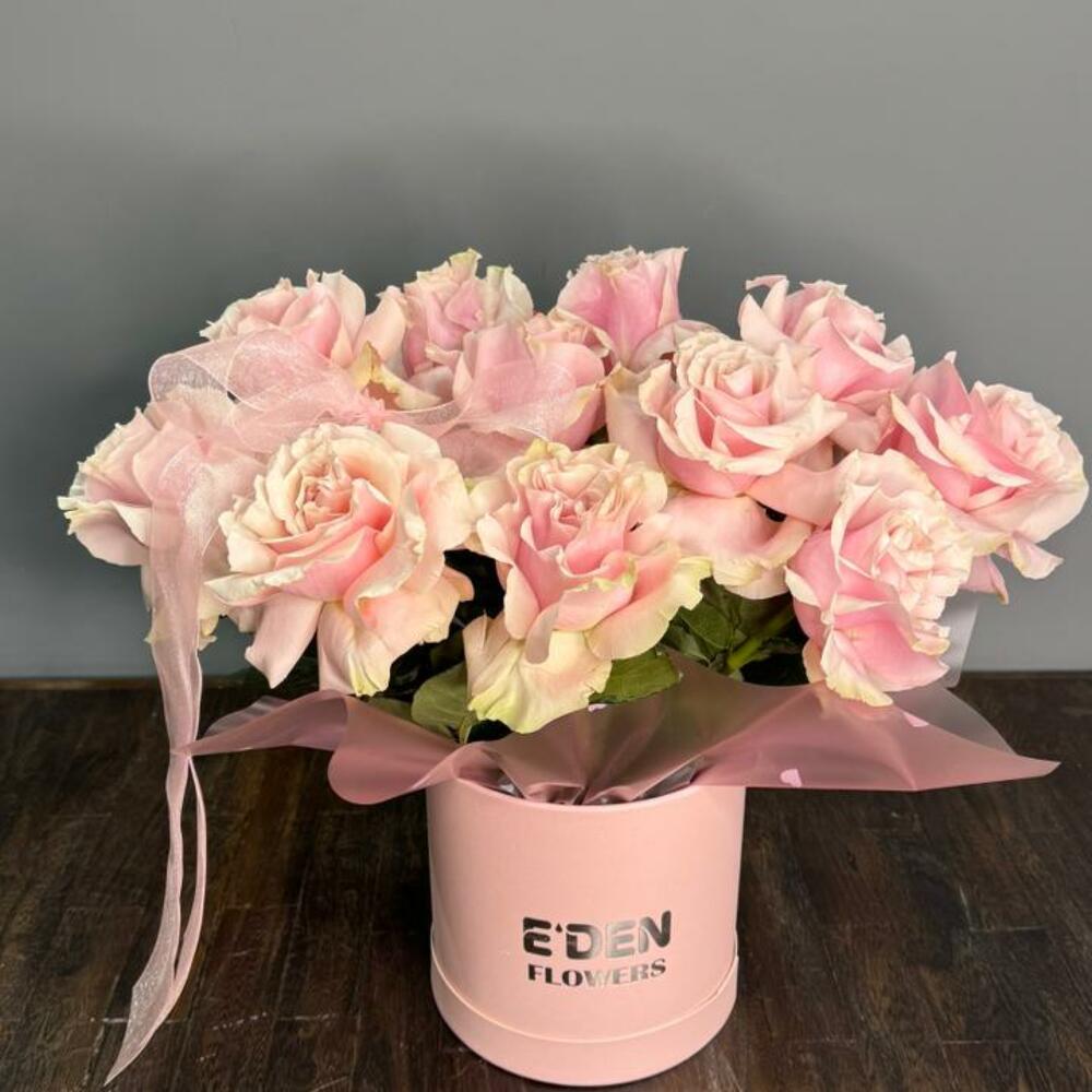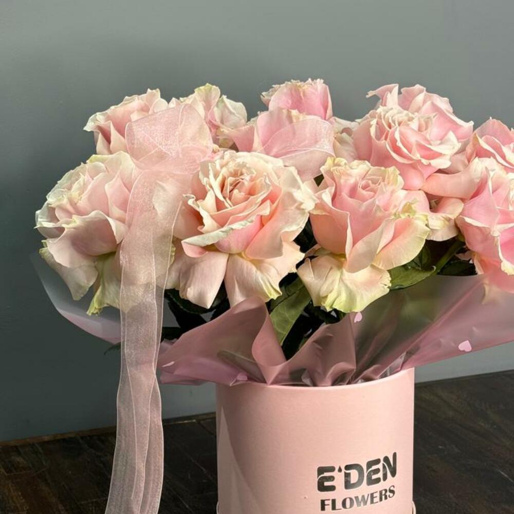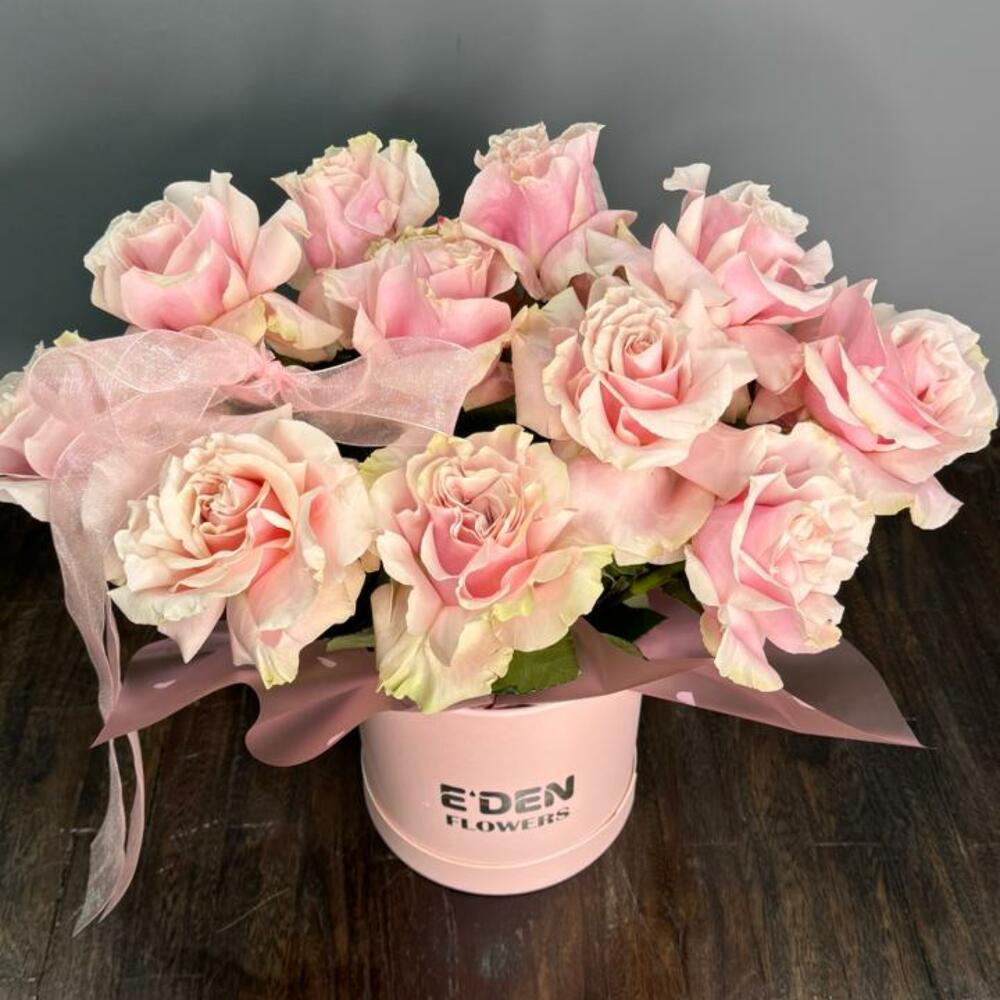 11 «Қызғылт Мондиал» раушан гүлінен жасалған композиция – жай ғана нәзіктіктен артық. Ашық қызғылт реңк, жұмсақ және әуе, нәзік жанасу сияқты. Бұл гүл шоғы таңдануды, сонымен қатар табандылықты білдіреді. Композиция ұқыпты және үйлесімді көрінеді – нәзік палитра, жапырақшалардағы ашық қызғылт қызғылт реңк және таза эстетика. Көлеңкесі: жұмсақ ұнтақ қызғылт Көңіл-күй: шынайылық, жақындық, сезімге деген сенімділік Беріктігі: 7–10 күнге дейін «Маған ұнайды» дегеннен сәл артық айтқыңыз келгенде.