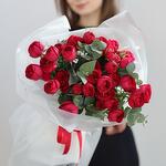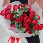 Red Piano-ның сәнді бұтақты, пионына ұқсас раушандары — құмарлық пен талғампаздықтың көрінісі. Олардың барқыттай жапырақшалары қанық қызыл реңкімен бірден баурап алып, сезімталдық пен талғампаздық атмосферасын тудырады. Жаңа эвкалипт букетке жеңілдік пен сергектік қосып, әр раушанның асылдылығын айқындайды. Бұл букет — жарқын сезімдер мен сенімділіктің символы. Ол өз құштарлығы мен нәзіктігін бір уақытта білдіргісі келетіндерге мінсіз.