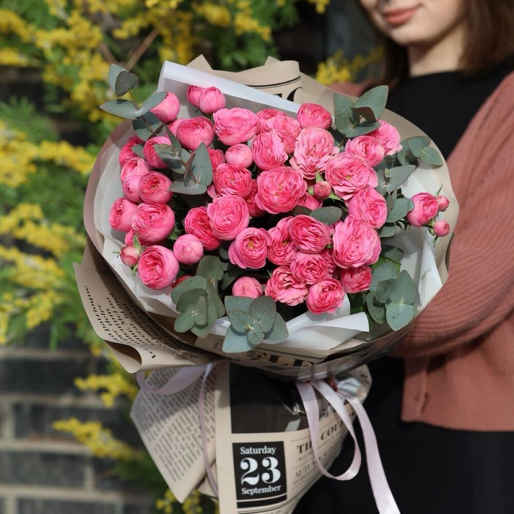 Этот букет — воплощение нежности и изящества. В его составе — изысканная сортовая кустовая роза Жизель с её утончёнными лепестками и свежий эвкалипт, который добавляет лёгкость и воздушность композиции. Гармоничное сочетание оттенков и текстур создаёт элегантный образ, который не оставит равнодушным даже самого взыскательного ценителя. Этот букет станет идеальным подарком, чтобы выразить свои чувства без лишних слов. Дарите вдохновение и утончённую красоту вместе 🩷
