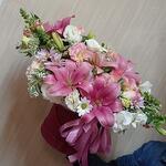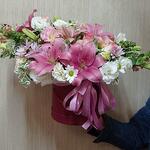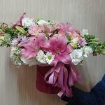 Объемный, раскидистый букет в коробки из Лилий и Эустомы подарит незабываемые эмоции вашим любимым!