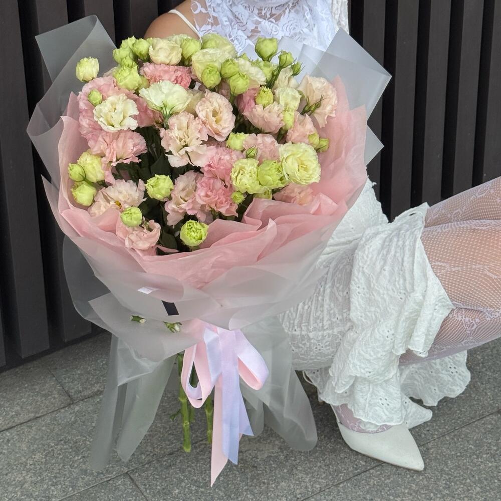 Элегантный букет из свежих лизиантусов - идеальный подарок для любимых, мамы, подруги или на праздник. Лёгкие воздушные цветы символизируют заботу, уважение и искренность чувств. Подойдёт для дня рождения, свидания, выписки из роддома или просто без повода.