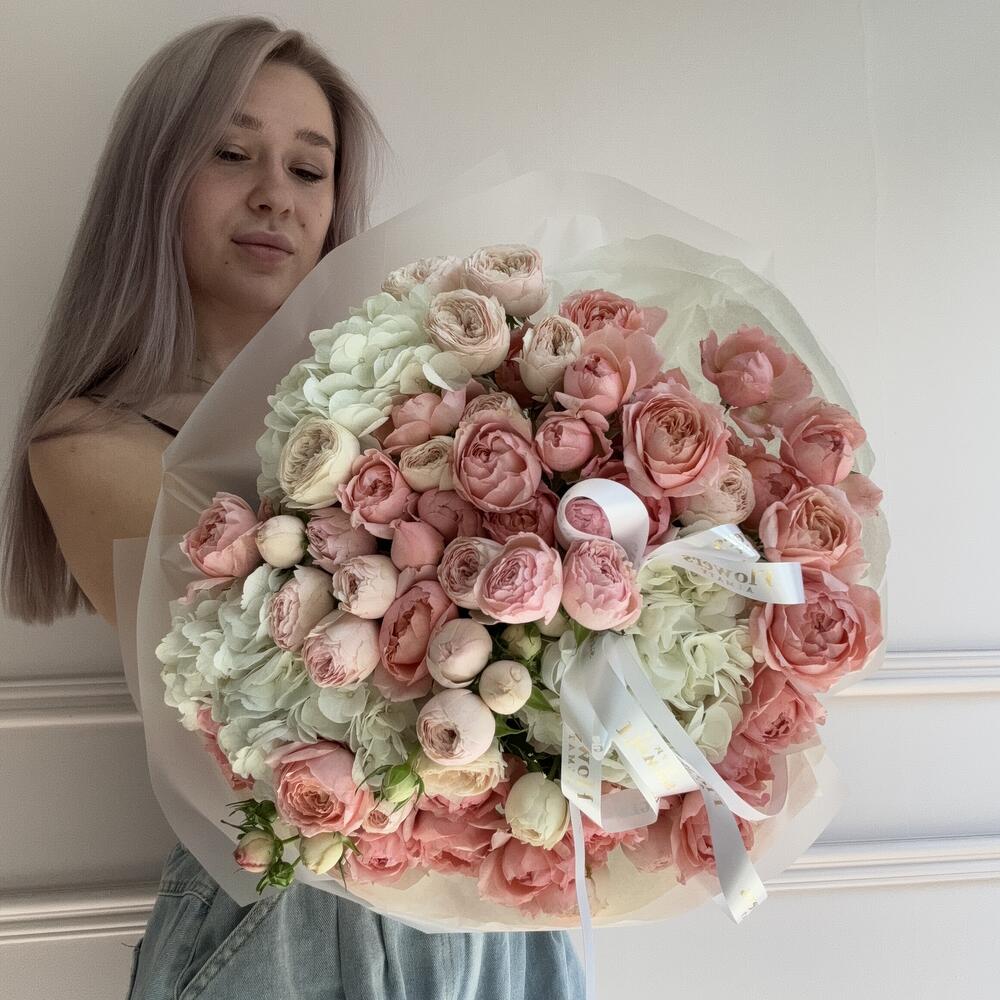 Микс Пионовидных роз с гортензиями