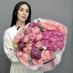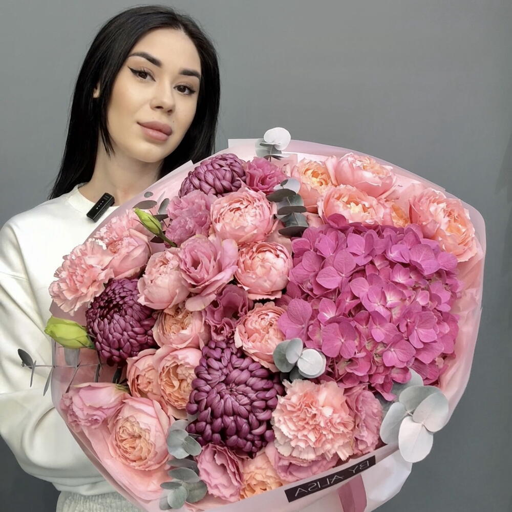 Эустома - 3 дана Диантус - 3 дана джульетта пион тәрізді раушан - 5 дана бигуди хризантема - 3 дана Гортензия Премиум Аралас - 1 дана