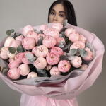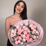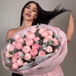 Қызғылт реңктердегі нәзік, мол, бір гүлді гүл шоғы. Туған күнге, кездесуге немесе кез келген жағдайға арналған тосын сыйға тамаша таңдау. 📏 Гүл шоғының диаметрі: ~60–65 см 🎁 Әдемі қаптама кіреді