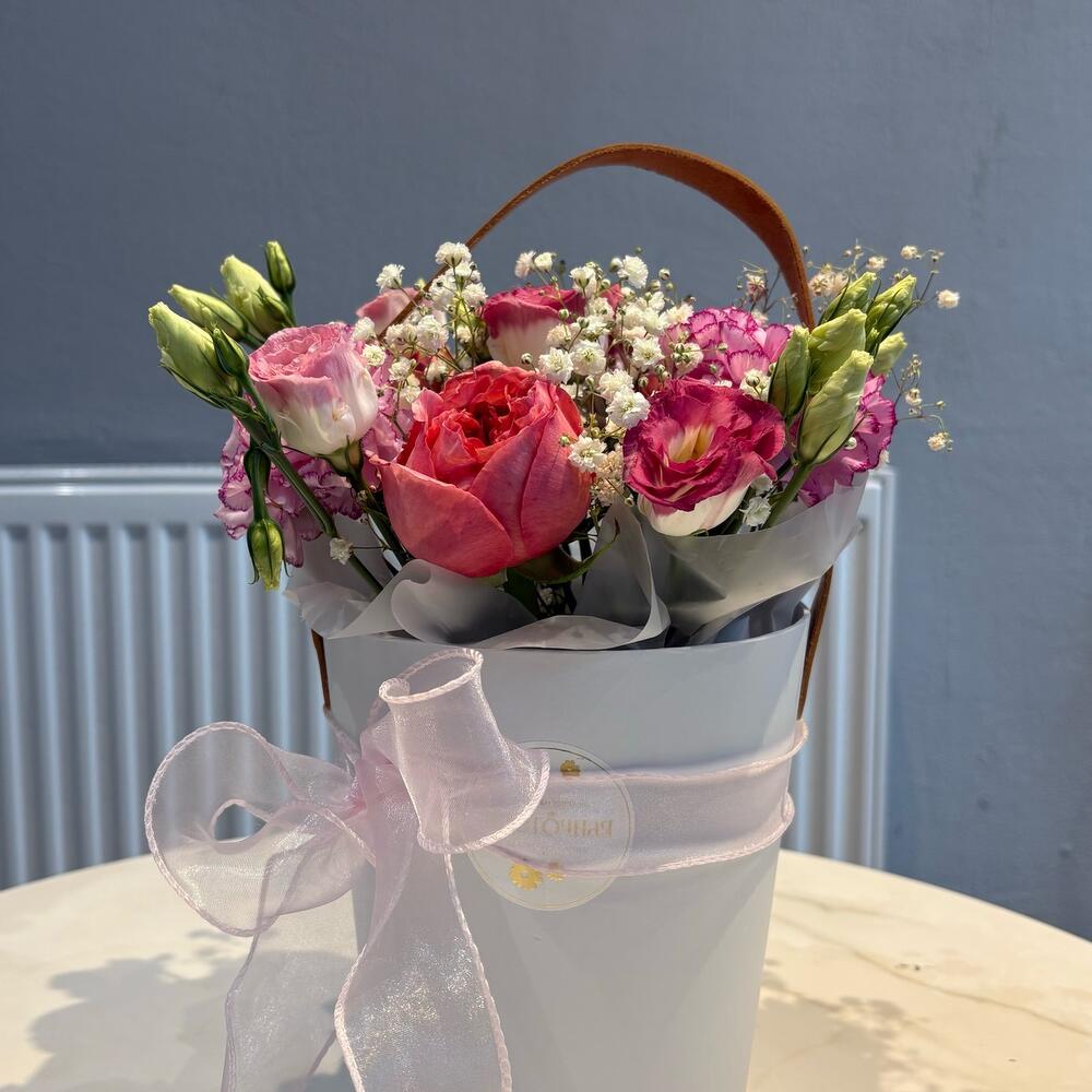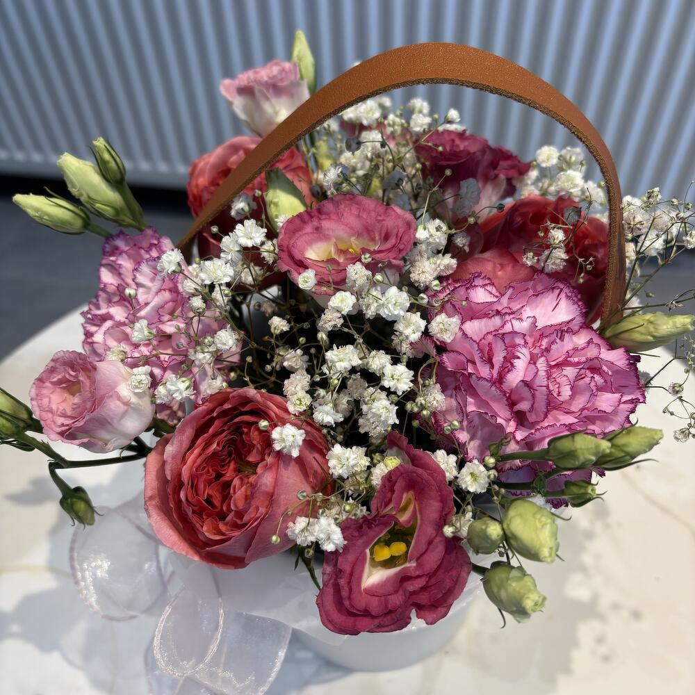 Гипсофила - 1 дана Маттиола - 3 дана Бұта раушаны - 2 дана Раушан - 2 дана Гвоздика - 1 дана