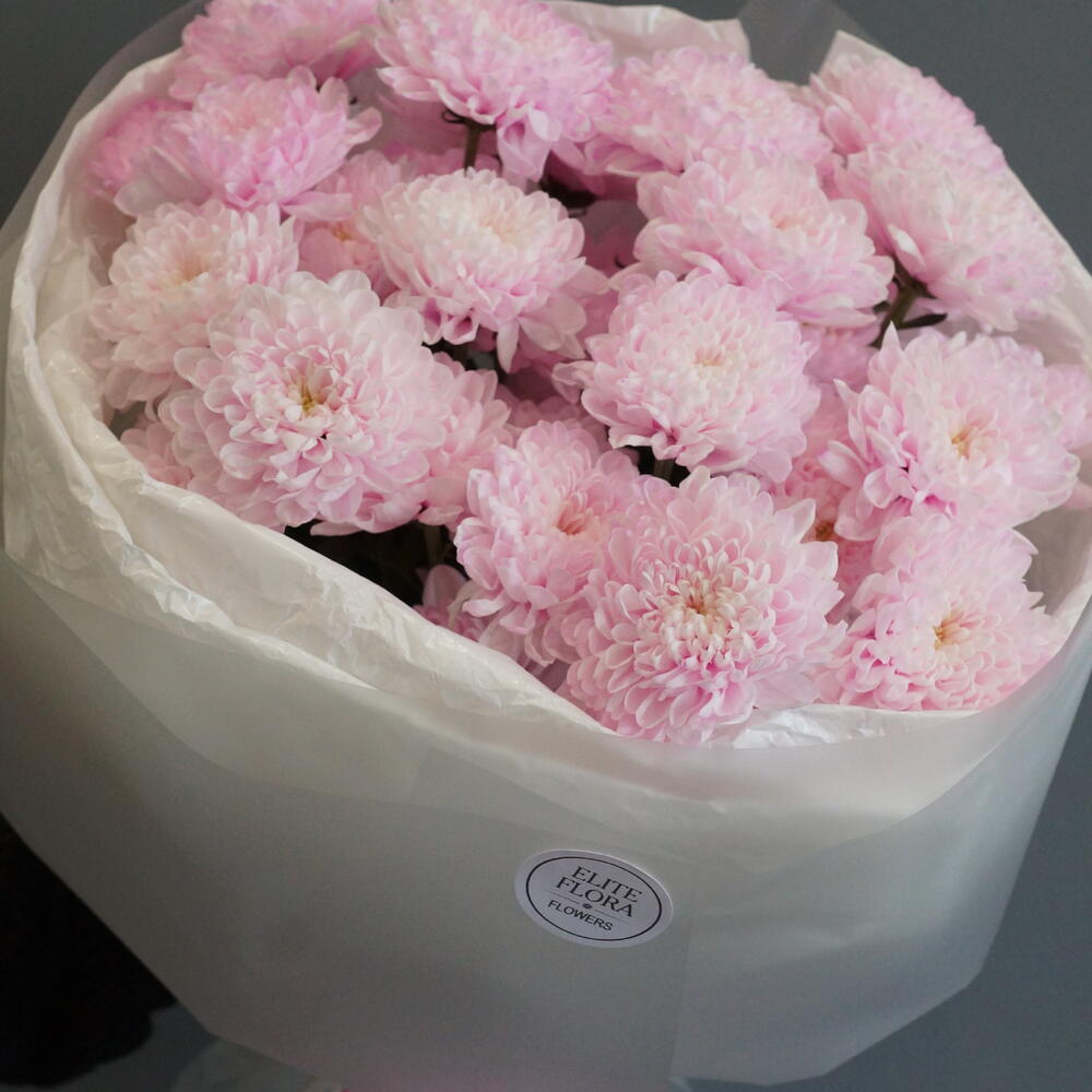 Этот изысканный монобукет из пяти свежих хризантем подарит ощутимое упоение красотой и свежестью природы. Букет аккуратно опутан двумя дизайнерскими упаковками, что добавляет ему еще больше элегантности и утонченности. Этот букет подойдет как прекрасный подарок в любой ситуации и внесет в домашний интерьер нотки особой изюминки.