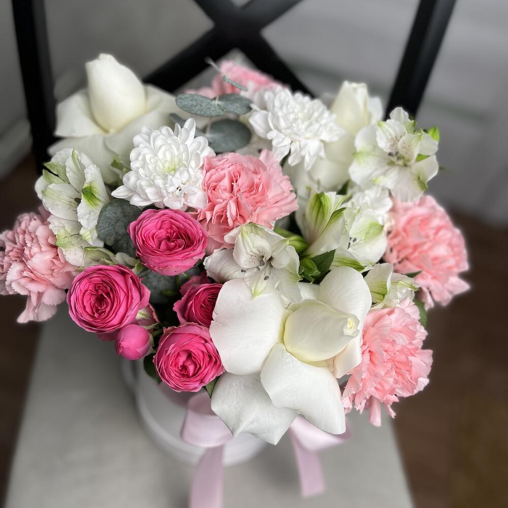 Альстроэмерия - 2 дана Хризантема бұтасы - 1 дана Бұта раушаны - 2 дана Гвоздика - 5 дана раушан - 5 дана