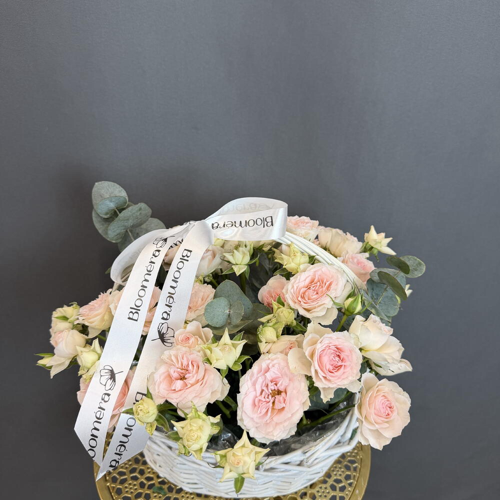 Жұмсақ қызғылт бұтақты раушандар себетте S өлшемі