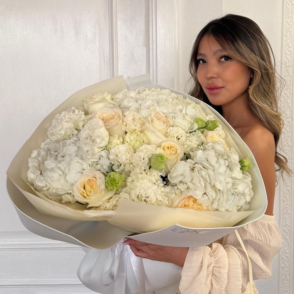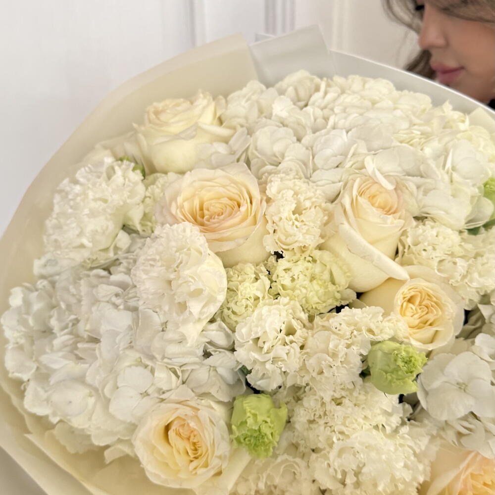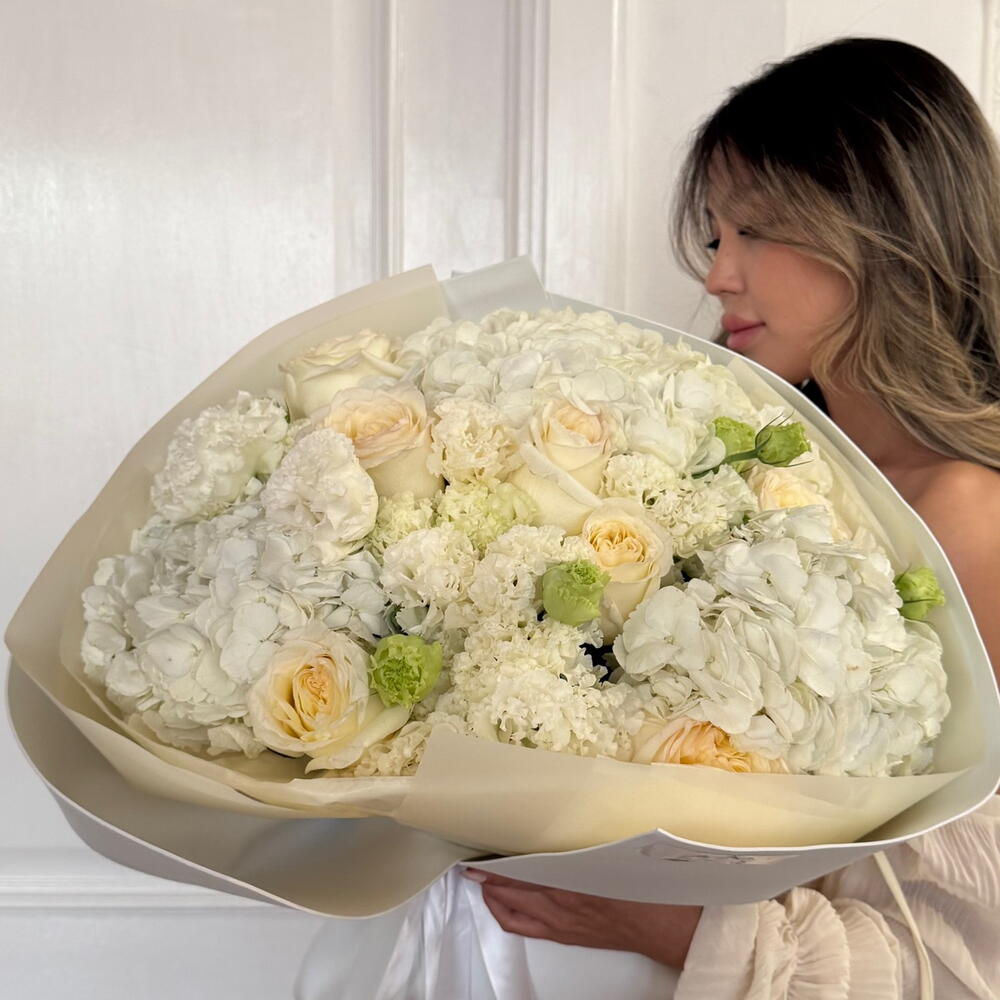 Нежный и пышный букет. В составе: гортензии, розы, лизиантус. Премиальное качество.