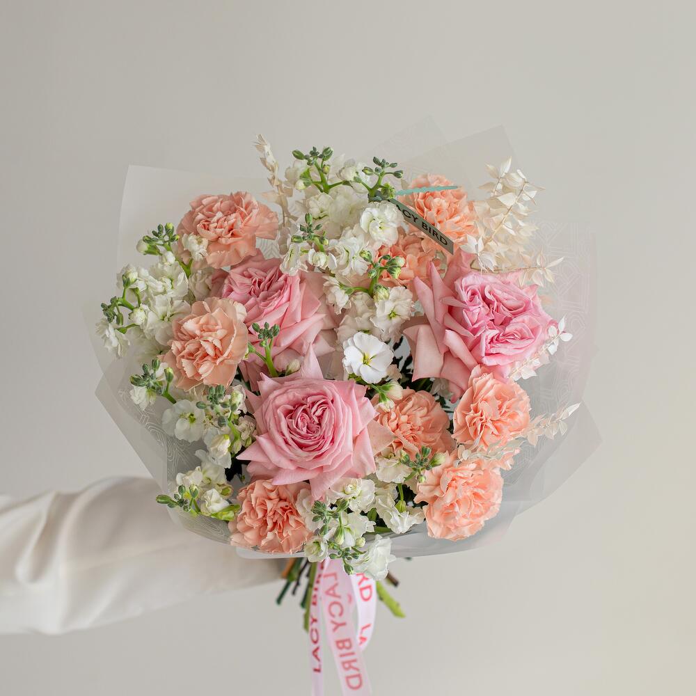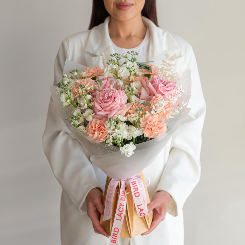 Букет Нежное послание от Lacy Bird – это элегантная композиция, наполненная утончённой нежностью. Розы сорта Pink OHara с их мягким розовым оттенком, белоснежная матиола, изысканные диантусы сорта Apple Tea и рускус создают гармонию, которая излучает мягкость и заботу. Этот букет словно послание, передающее ваши самые тёплые и искренние чувства. Идеально подходит для: -Признания в любви или выражения глубокого уважения, -Трогательного подарка для близких Мы позаботились обо всём: -Транспортировочный бокс гарантирует безопасность доставки -Аквабокс поддержит свежесть цветов -Бирочка с предсказанием добавит особое настроение -Подкормка для цветов поможет сохранить их красоту -Открытка и конверт станут идеальным дополнением для ваших искренних слов Нежное послание – это не просто букет, а символ тепла и внимания, который оставит незабываемое впечатление.