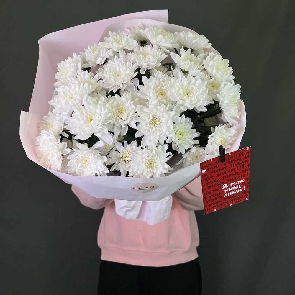 Невероятный нежный пышный букет из хризантем будет долго радовать получателя, выглядит очень эффектно и красиво