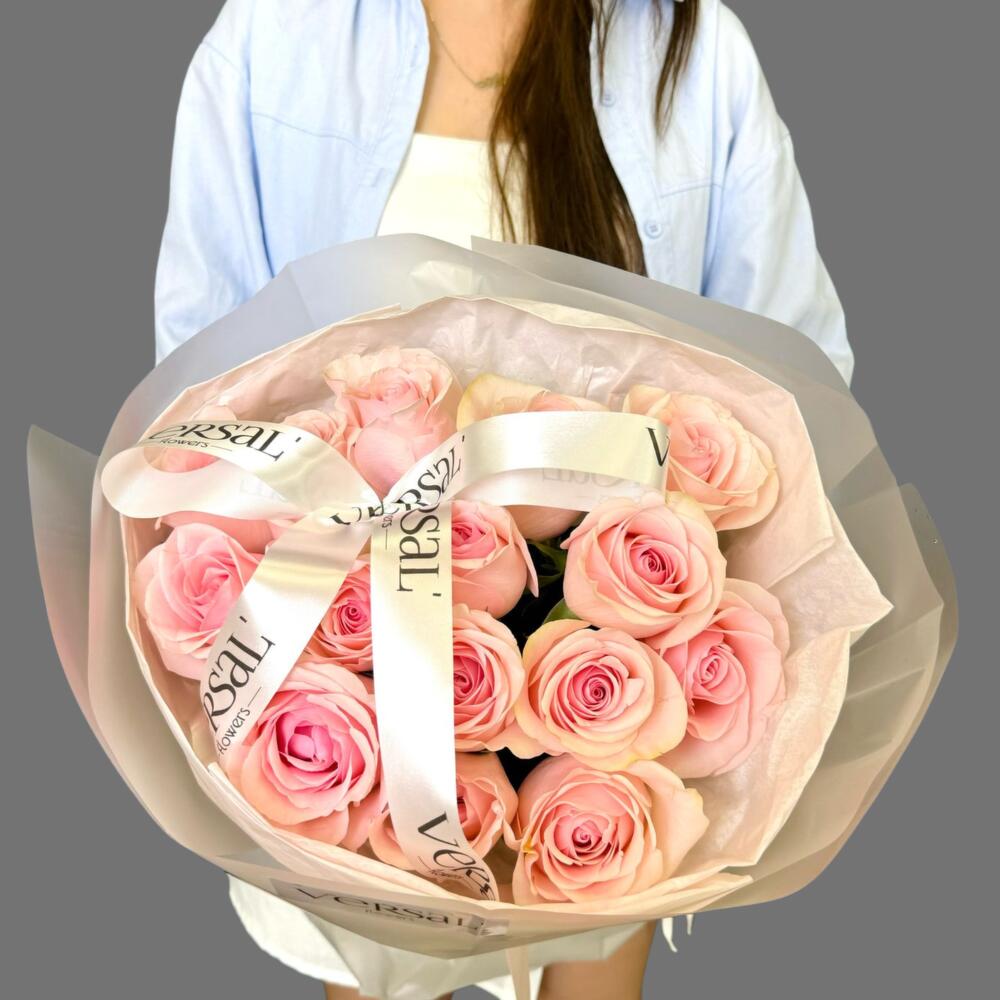 «Нежность благодарности» — букет S из 15 роз 50 см (нежно-розовые)