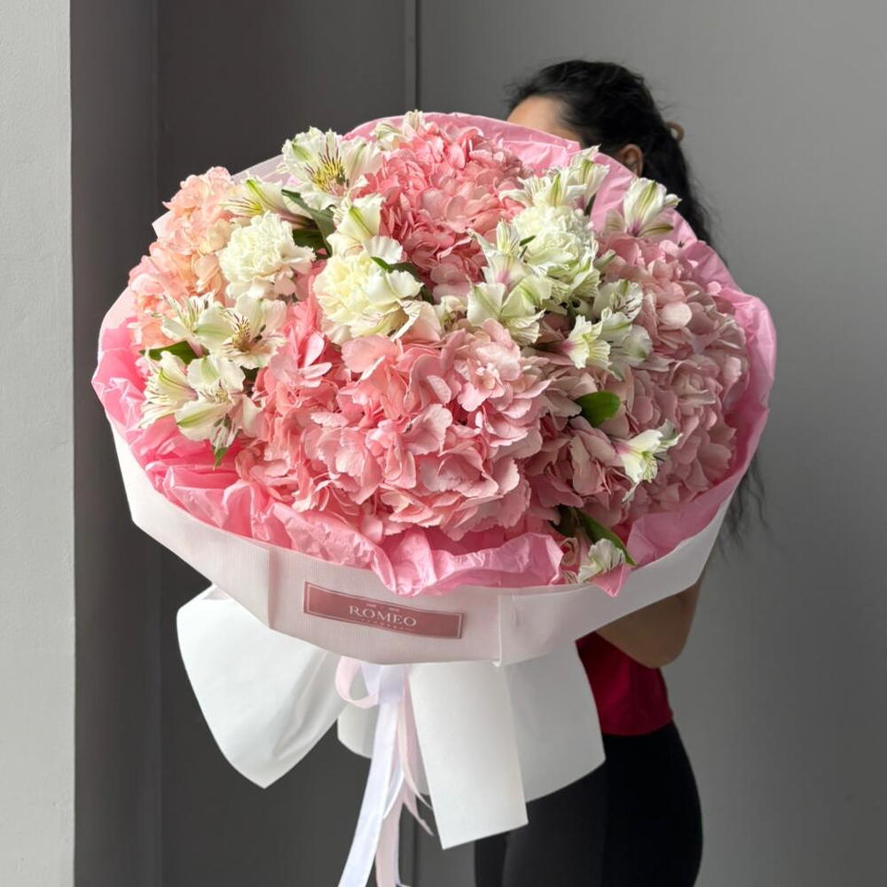 Альстроэмерия - 5 дана Гортензия - 4 дана Гвоздика - 3 дана Безендіру - 1 дана