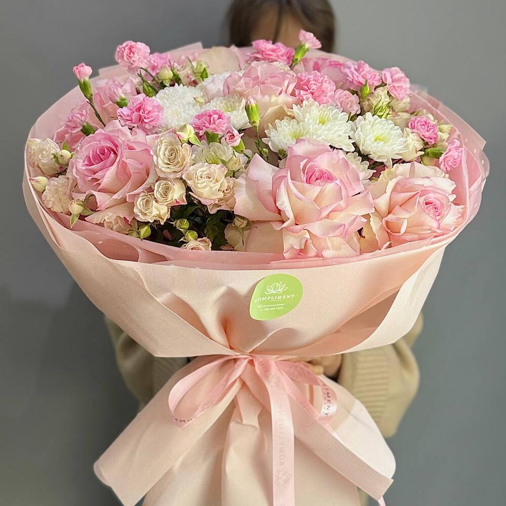 «Мен сені сүйемін» деген жеткіліксіз. Бұл гүл шоғы сен үшін сөйлейді». Нәзік ұнтақ тәрізді раушан гүлдері, ашық хризантемалар және ашық қызғылт спрей гүлдерінің екпіндері – құмарлық пен қамқорлықтың үйлесімі. «Мен гүл сатып алдым» деген құсбелгіні қойып қана қоймай, әсер қалдырғыңыз келсе, тамаша сыйлық.