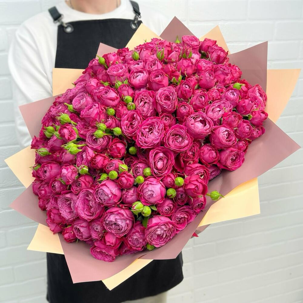 Букет из кустовых пионовидных роз марвел. Роскошные пионовидные кустовые розы - отличная замена пионам. В этой композиции собраны самые свежие и красивые цветы. Отличаются воздушными, пористыми бутонами и слегка небрежной рубашкой (внешние лепестки). Данные цветы рассчитаны на эффект вручения, большинство сортов с быстрым роспуском. Пионовидные розы можно дарить по любому поводу: день рождения, свадьба, юбилей, 8 марта, 14 февраля, день мамы, первое свидание или просто потому, что вы супер романтичны. Кликайте на наш магазин, знакомьтесь со всем ассортиментом, а также оставляйте нас в избранном и будьте в курсе всех акций и новинок!