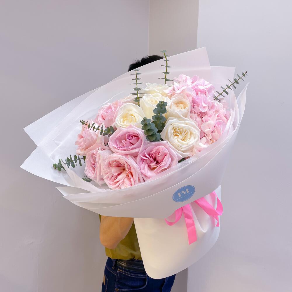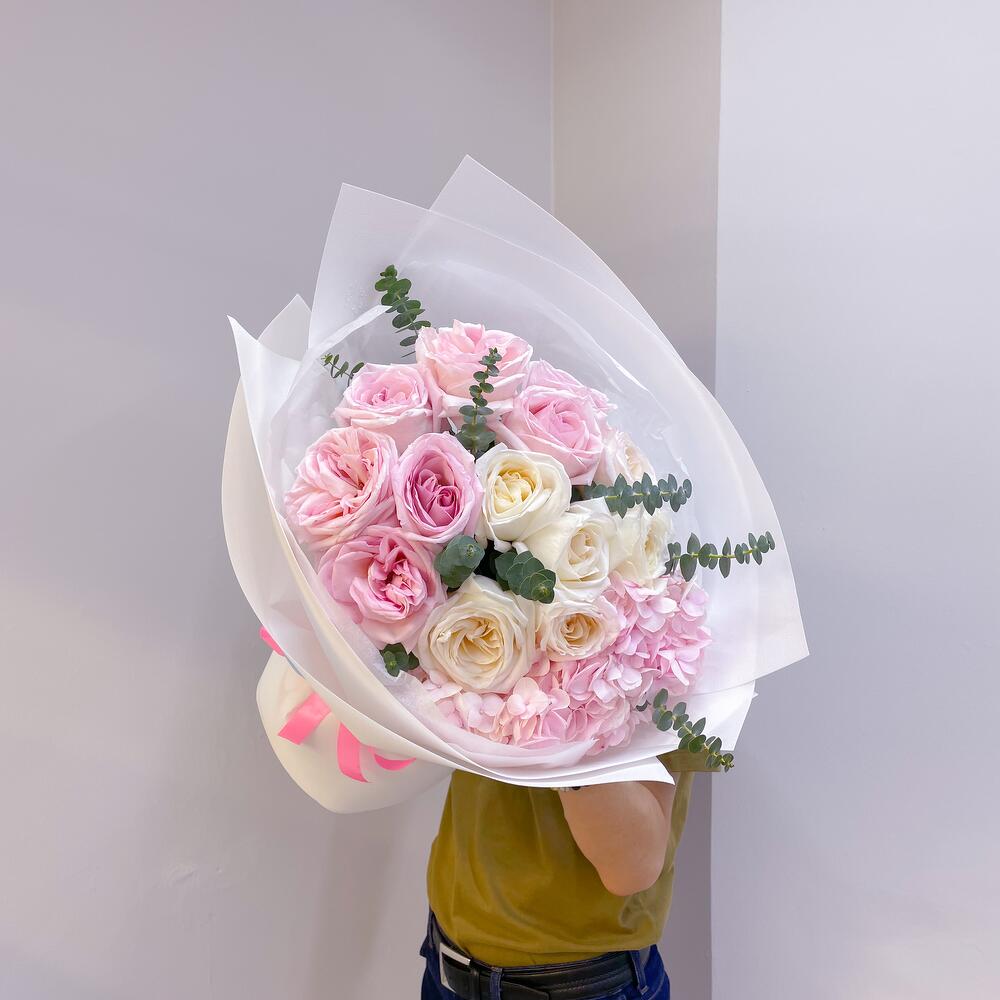 Гортензия - 1 дана Эвкалипт - 2 дана пионовидные розы - 9 дана