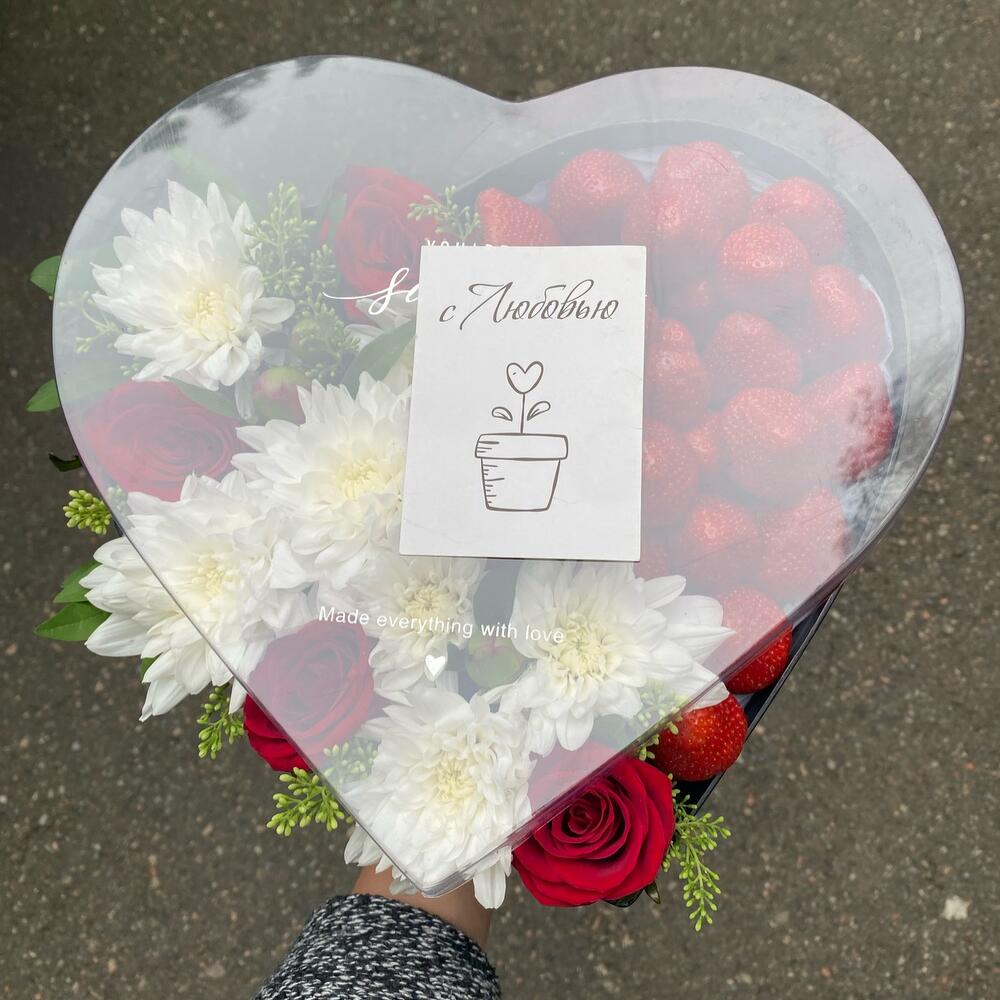 Құлпынай - 22 дана Хризантема бұтасы - 2 дана Раушан - 5 дана Зелень - 1 дана