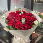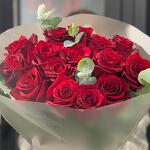 Эвкалипт - 5 дана Дизайнерлік қаптама - 1 дана роза премиум эквадор - 15 дана лента атласная брендированная - 1 дана аквабокс с водой для транспортировки - 1 дана витамины для цветов (кризал) - 1 дана открытка бесплатно(на выбор) - 1 дана