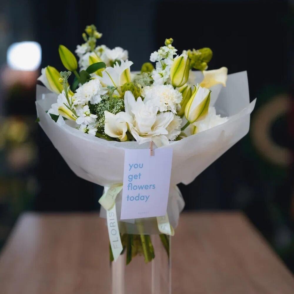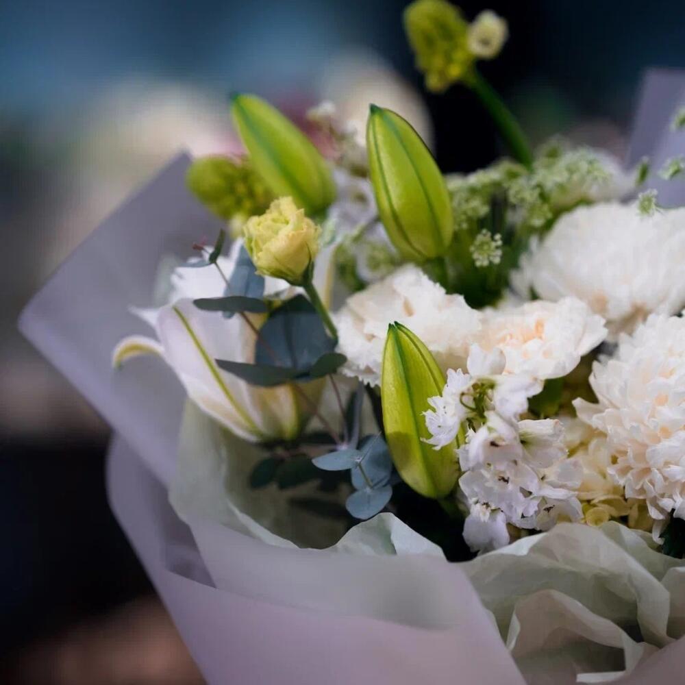 Калла - 2 дана Маттиола - 3 дана Диантус - 5 дана Лилия Белая - 2 дана Дизайнерлік қаптама - 1 дана Орниготалум - 3 дана Орлайя - 2 дана