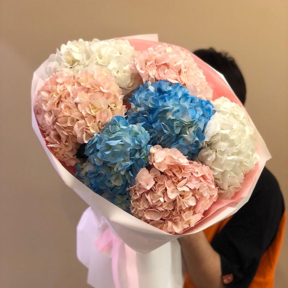 Этот изысканный авторский букет обязательно станет украшением любого праздника. Семь головок гортензии, словно маленькие всплески радости, гармонично сочетаются между собой, создавая утонченный и неповторимый образ. Этот букет станет замечательным выбором дляСценариев тех, кто хочет подарить самые нежные и трепетные эмоции.