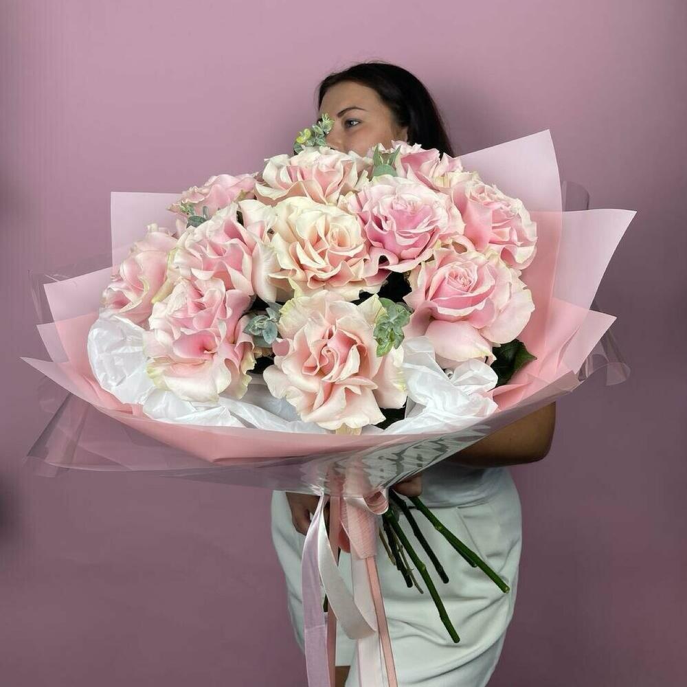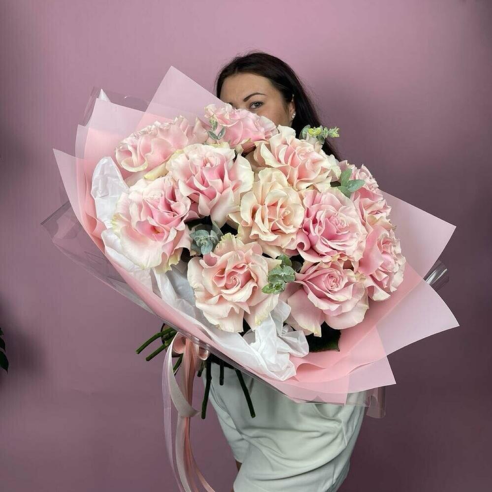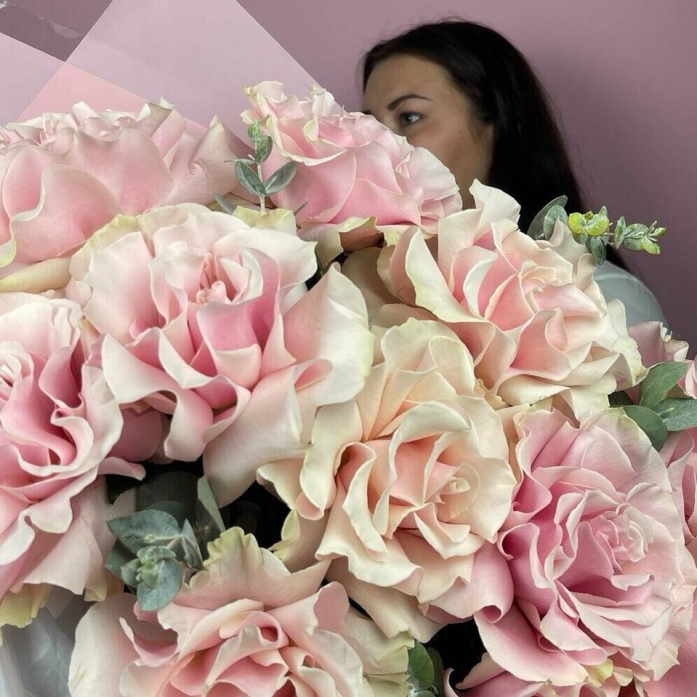 Французские розовые розы с ароматным эвкалиптом в стильной упаковке🥰