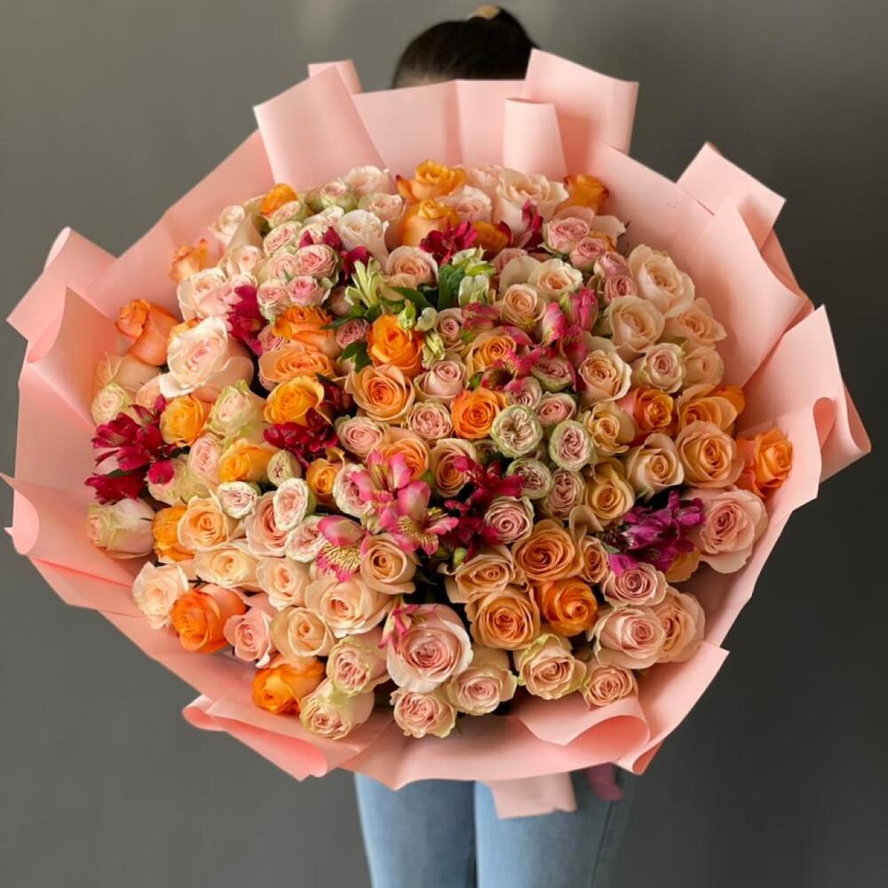 Альстроэмерия - 10 дана Бұта раушаны - 10 дана Раушан - 151 дана