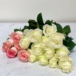 Очаровательный букет из 15 роз сочетает нежные белые и романтичные розово-персиковые бутоны. Контраст мягких оттенков создаёт изысканный и элегантный образ, который подойдёт для признания в любви, поздравления или просто для того, чтобы порадовать близкого человека. Каждая роза отобрана вручную, чтобы подчеркнуть изящество и утончённость букета. Простой и стильный, он идеально впишется в любой интерьер и подарит атмосферу тепла и нежности.