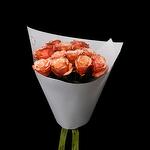 Моно букет из ярких роз сорта Kahala. Упакованны в белую бумагу и белую коробку с открыткой Malli Botanicals по запросу.