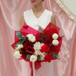 Гортензия - 1 дана Лимониум - 1 дана Орау - 1 дана Бұрыш - 3 дана Эвкалипт Цинерея - 1 дана ақ эустома - 2 дана Эквадор раушаны - 3 дана нина раушан - 2 дана момоко хризантема - 2 дана