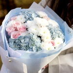 Гортензия - 3 дана Хризантема бұтасы - 5 дана Раушан - 7 дана