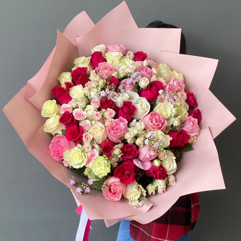 Ваксфлауэр - 5 дана Раушан - 51 дана Спрей роза - 15 дана