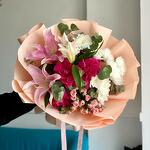 Лилия - 1 дана Бұта раушаны - 2 дана Хризантема бұтасы - 3 дана Эвкалипт - 2 дана Роза розовая - 3 дана