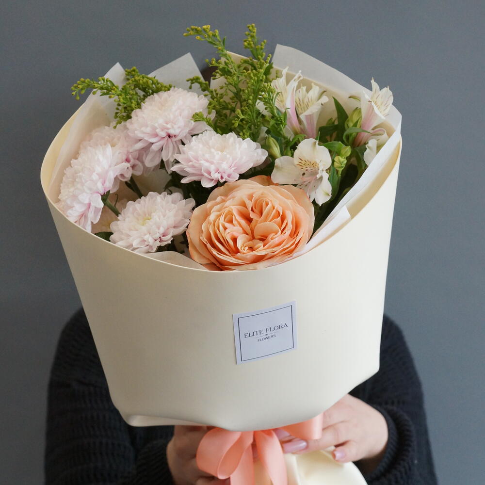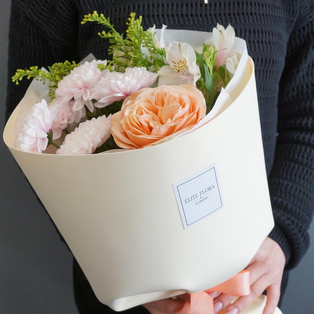 Альстроэмерия - 1 дана Солидаго - 1 дана Хризантема бұтасы - 1 дана Роза Голландская - 1 дана Фисташка - 1 дана