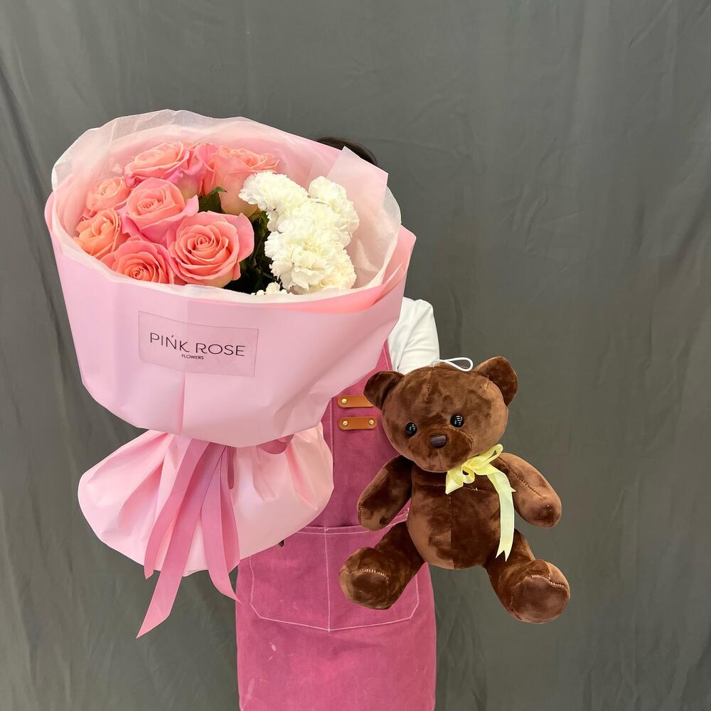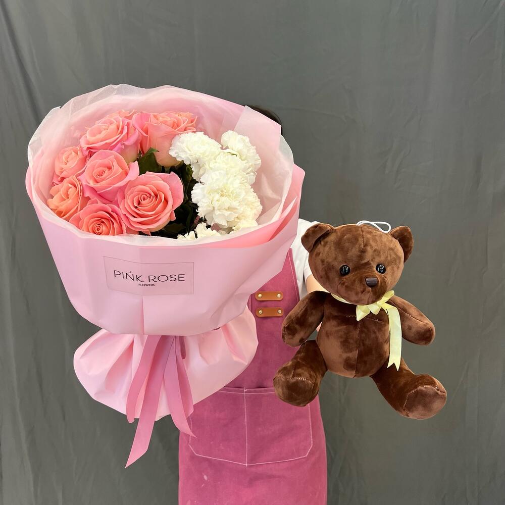 Диантус - 5 дана Мишка плюшевый - 1 дана раушан - 8 дана