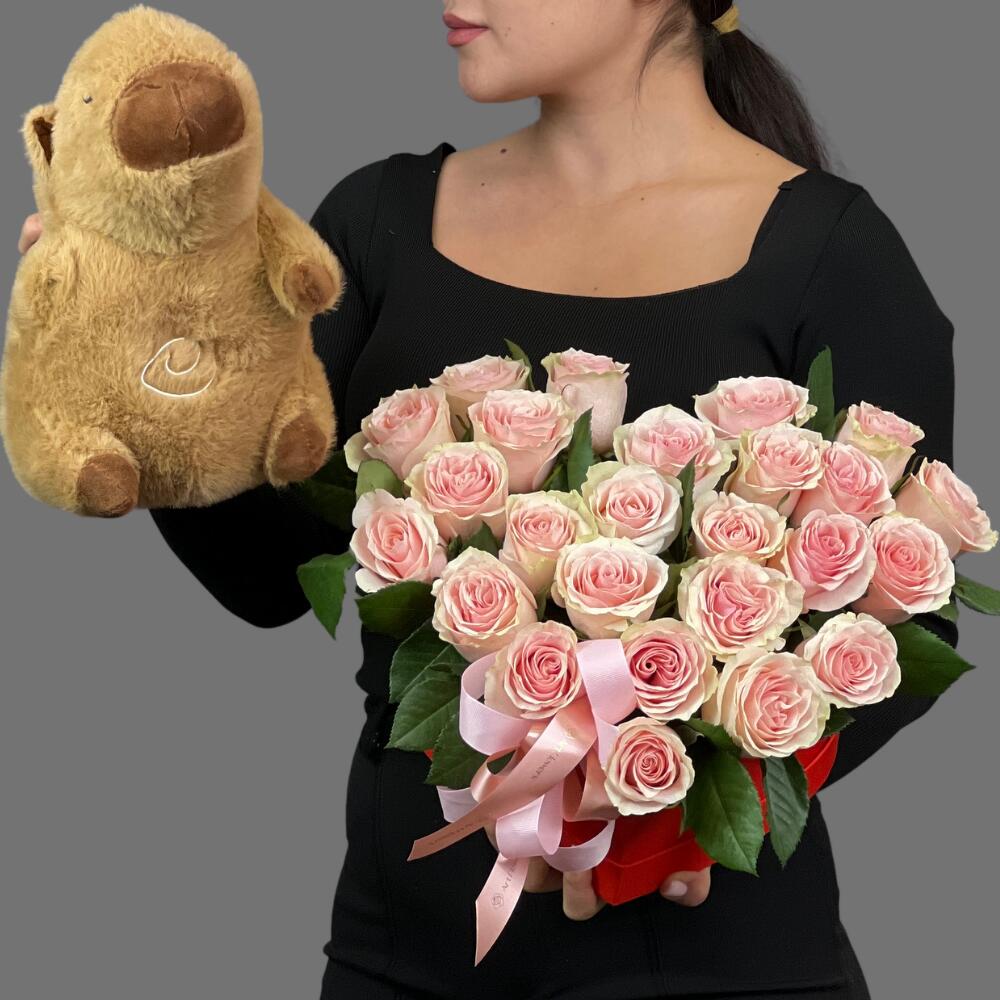 Шикарный букет в форме сердца + милая мягкая игрушка. Подарите своей Любимой незабываемые впечатления и эмоции.