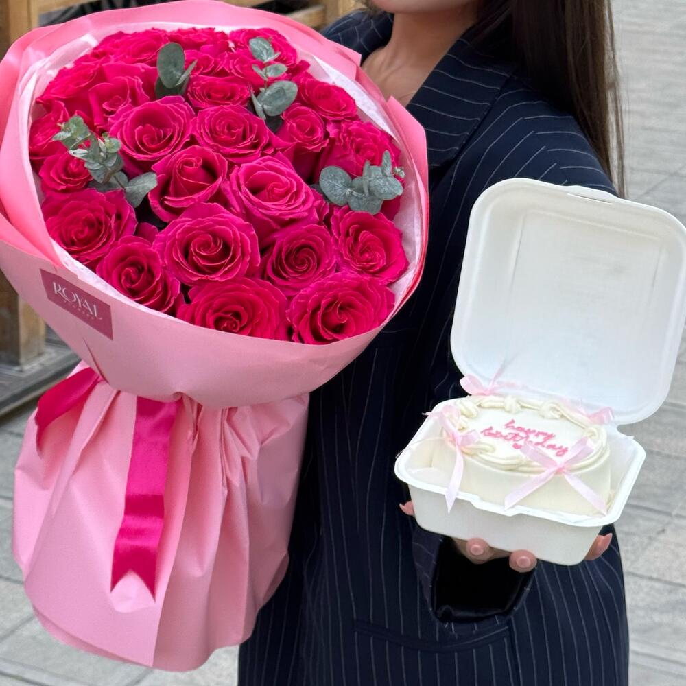 Сладкое комбо из 25 роз + бенто торт