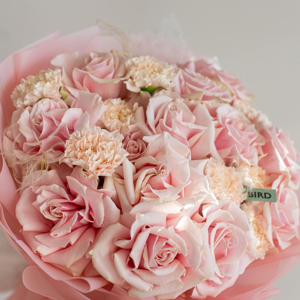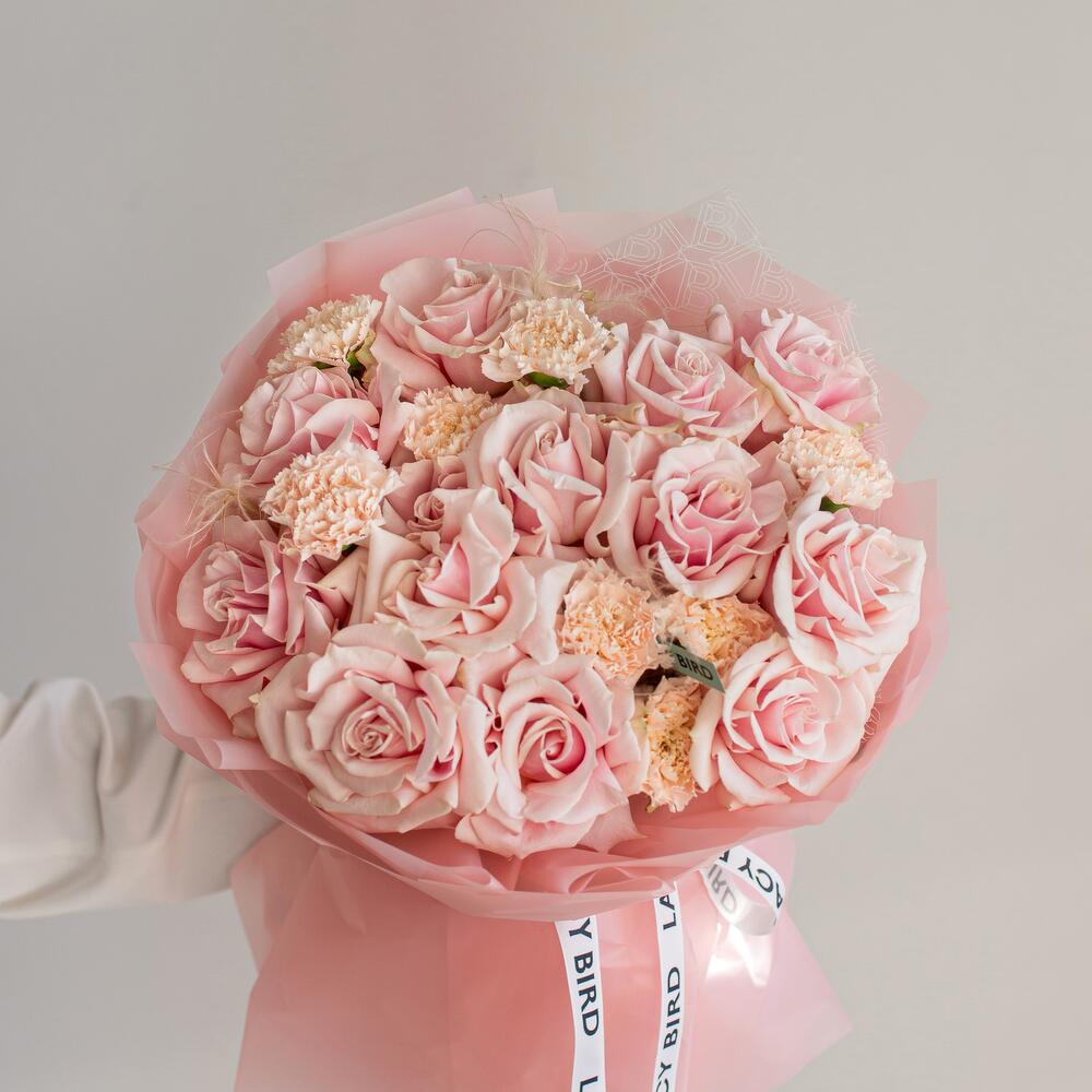 Букет Слова Любви от Lacy Bird – хит продаж, который покоряет сердца своей изысканной красотой и утончённой романтичностью. Розы сорта Пинк Мондиаль с их нежным розовым оттенком, элегантные диантусы сорта Brut и легкая стифа создают идеальную композицию для самых искренних и тёплых признаний. Этот букет прекрасно подойдёт для: - Признания в любви или для выражения глубоких чувств - Подарка для близкого человека, который останется в памяти Каждый букет Lacy Bird включает в себя: - Транспортировочный бокс для безопасной доставки - Аквабокс для сохранения свежести цветов - Бирочку с предсказанием для нотки магии - Подкормку для долговечности букета - Открытку и конверт, чтобы выразить ваши искренние слова Слова Любви – это больше, чем просто букет, это настоящее послание, которое навсегда останется в памяти.