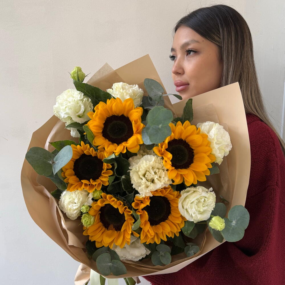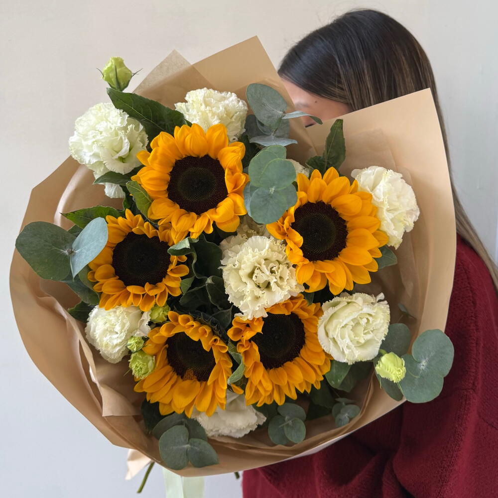 Лизиантус - 6 дана Эвкалипт - 6 дана Подсолнух - 5 дана оформление дизайнерское - 1 дана