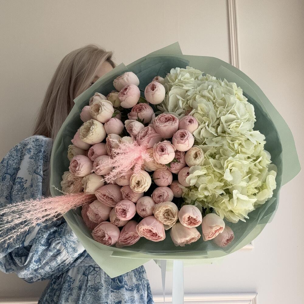 Гортензия - 2 дана Сухоцветы - 1 дана Спрей роза - 19 дана