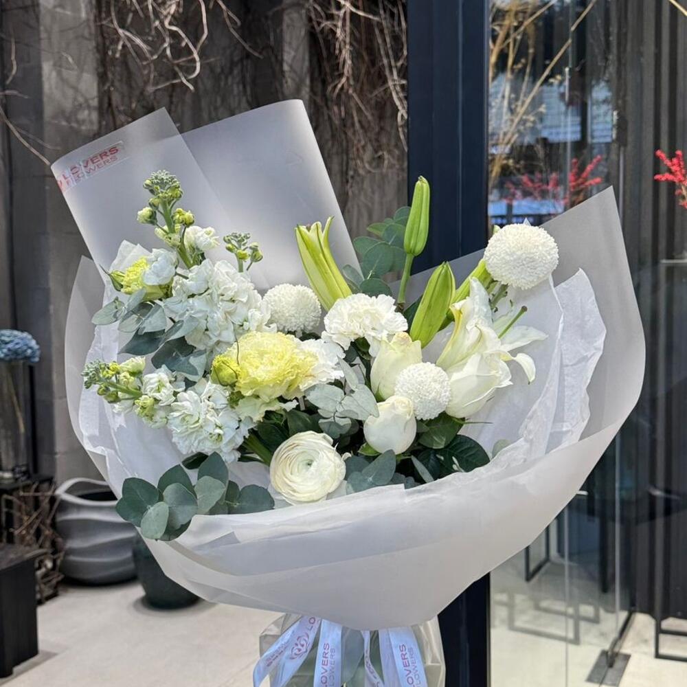 Лилия - 2 дана Маттиола - 2 дана Хризантема - 3 дана Диантус - 2 дана