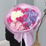 Этот букет — настоящее воплощение нежности и гармонии! Сочетание мягких оттенков розового, белого и сиреневого создаёт атмосферу утончённой элегантности. Нежные гортензии придают композиции объём и лёгкость, а яркие пионовидные розы добавляют акцентов и живости. Такой букет станет идеальным подарком для особого случая — будь то день рождения, годовщина или признание в любви. Он наполнит пространство свежестью и красотой, а внимание к деталям в оформлении подчеркнёт его роскошный вид. Чтобы букет дольше радовал своей свежестью, поставьте его в чистую воду, подрезая стебли каждые два дня, избегайте прямого солнца и сквозняков.