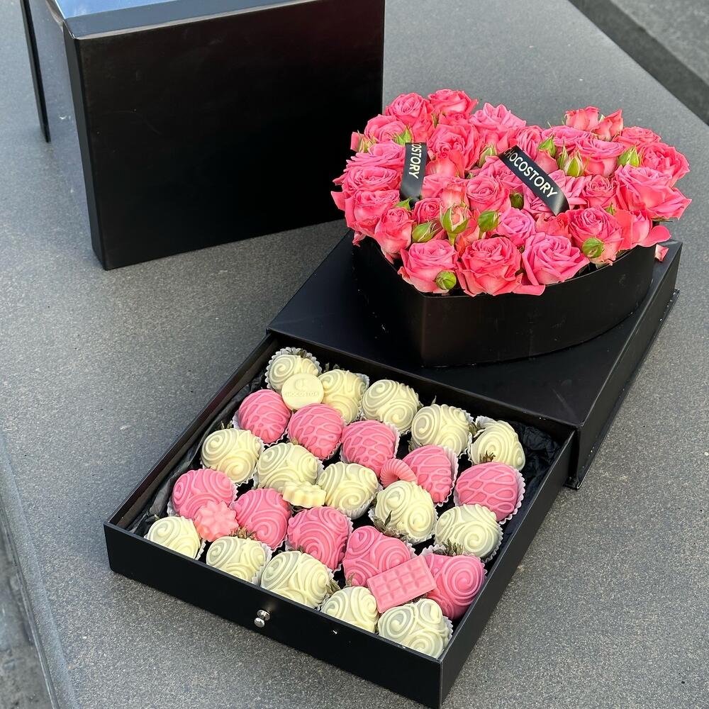 Callebaut шоколадындағы (Бельгия) құлпынай - 25 дана спрей роза (кения) - 5 дана