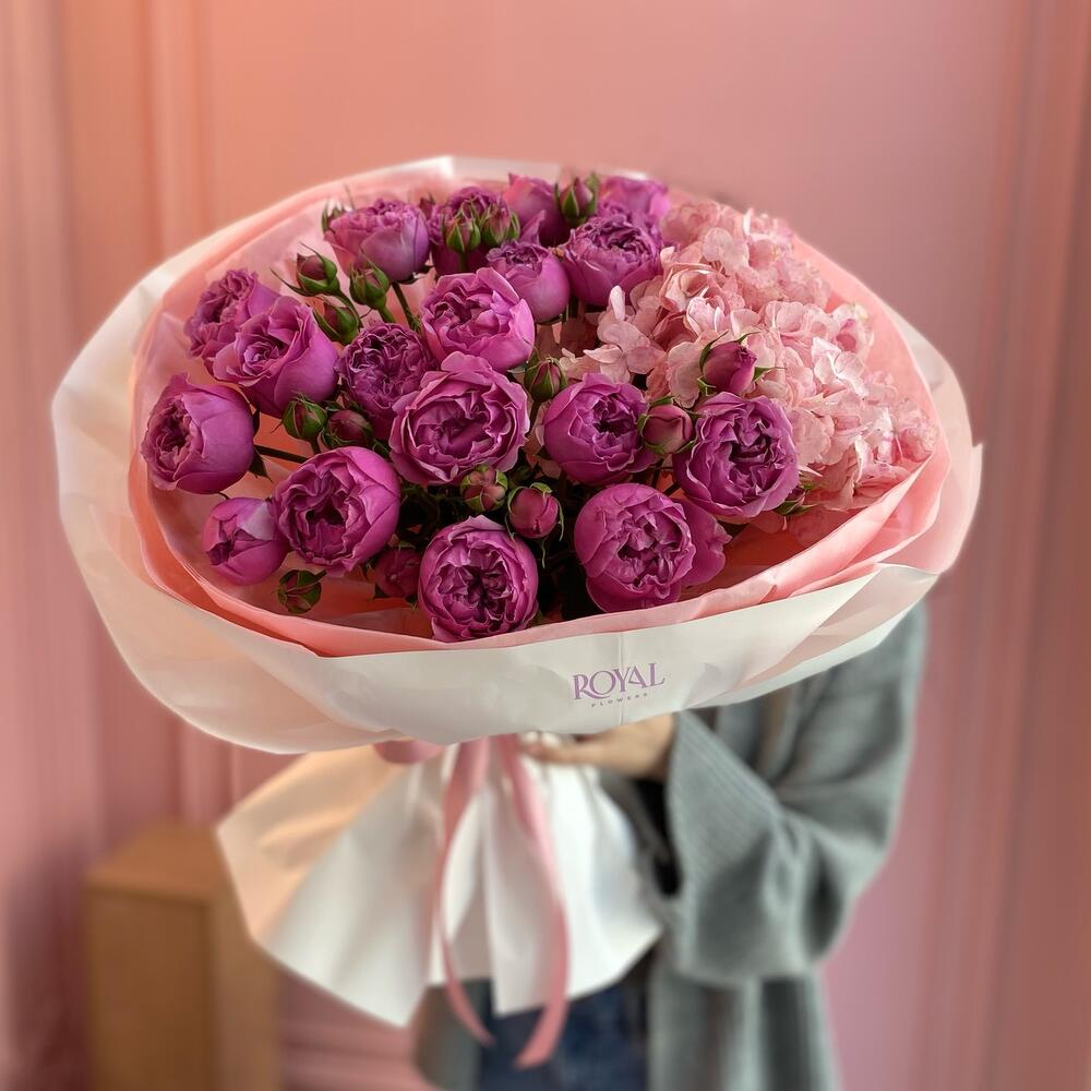 Гортензия - 1 дана Бұта раушаны - 5 дана