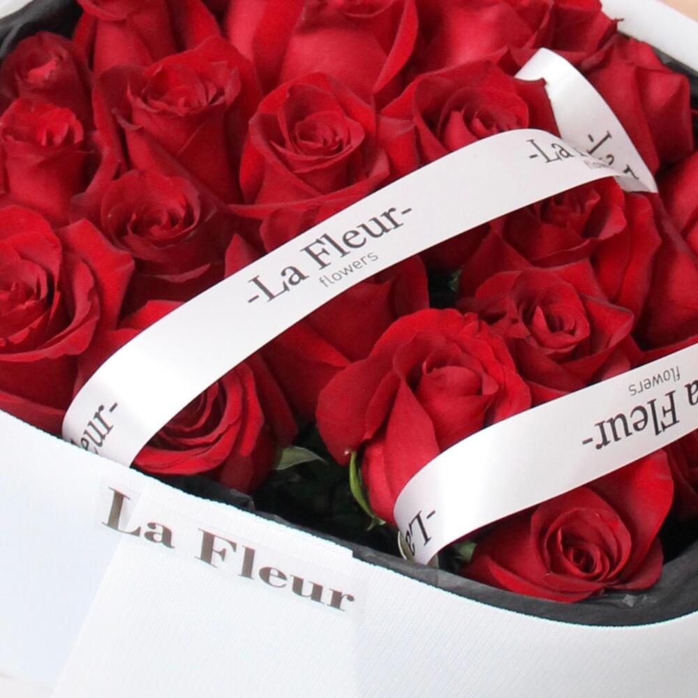 Голландские розы насыщенного алого цвета — символ горячих чувств. Роскошный подарок в стильной белой упаковке для самой важной женщины.