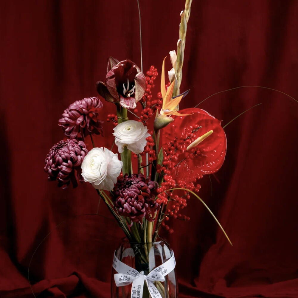 Букет, вдохновлённый насыщенной гаммой и драматичным настроением. Он передаёт страсть и элегантность через глубокие и мягкие оттенки, создавая впечатление живой картины. Каждый букет уникален — композиция , сохраняя общую гармонию и атмосферу.