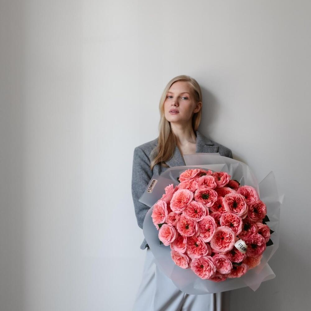 Көктемгі пион тәрізді раушан гүлдерінен жасалған букет Mandarin